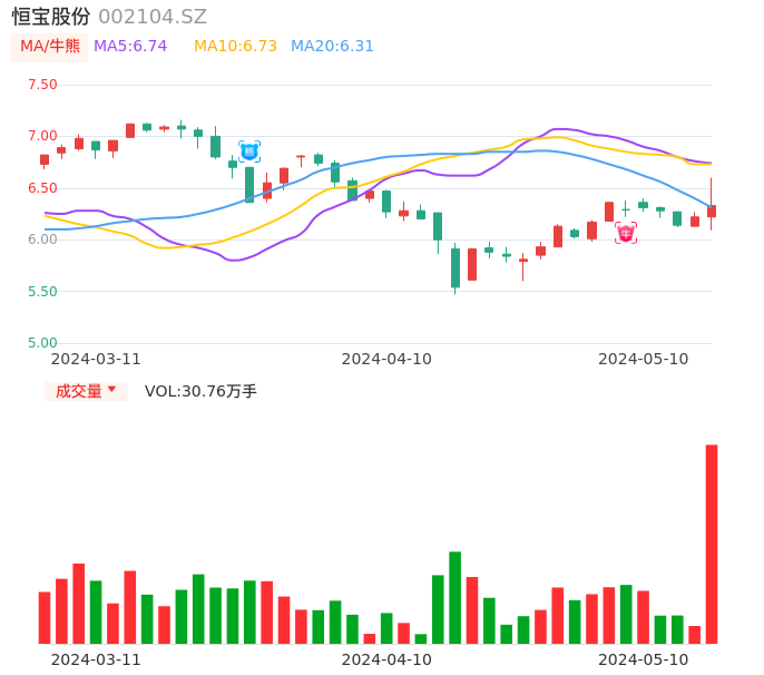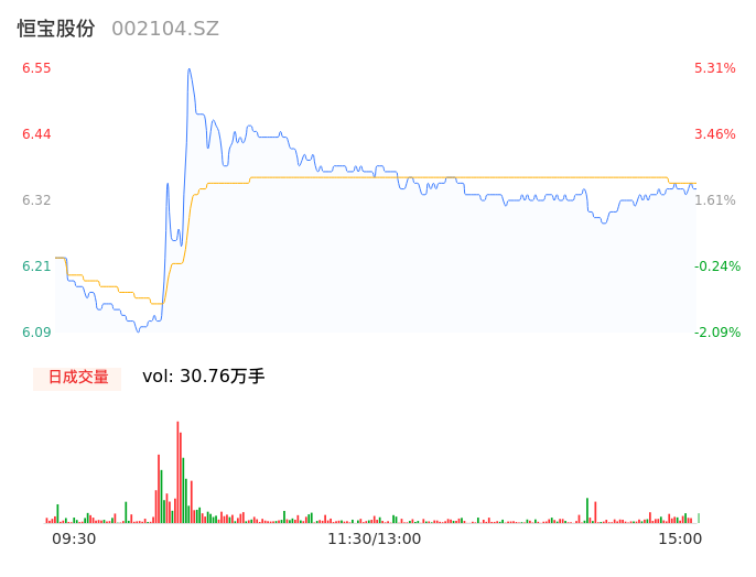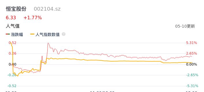 05月10日,恒宝股份收报6.33,股价涨幅1.77%,成交金额1.95亿元,换手率5.17%。