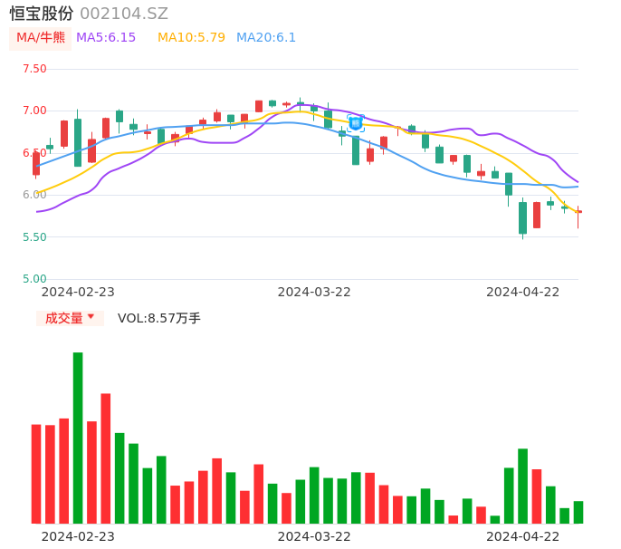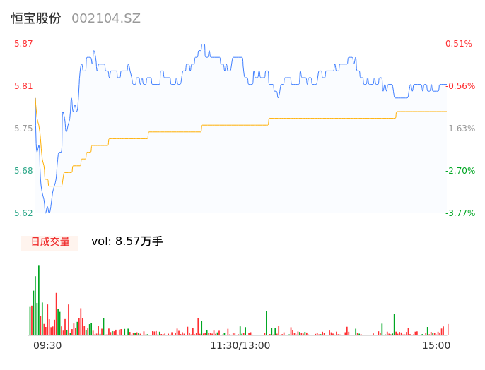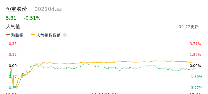 04月22日,恒宝股份收报5.81,股价涨幅-0.51%,成交金额4945.34万元,换手率1.45%。