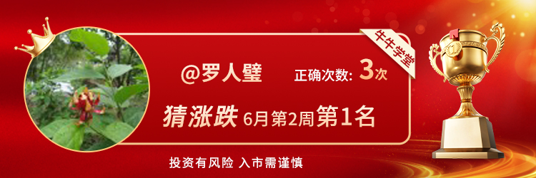 2、大家期待的【猜涨跌】活动已上线,在圈子内点击对话框上方【猜涨跌】了解详情!第四周冠军:罗人璧
