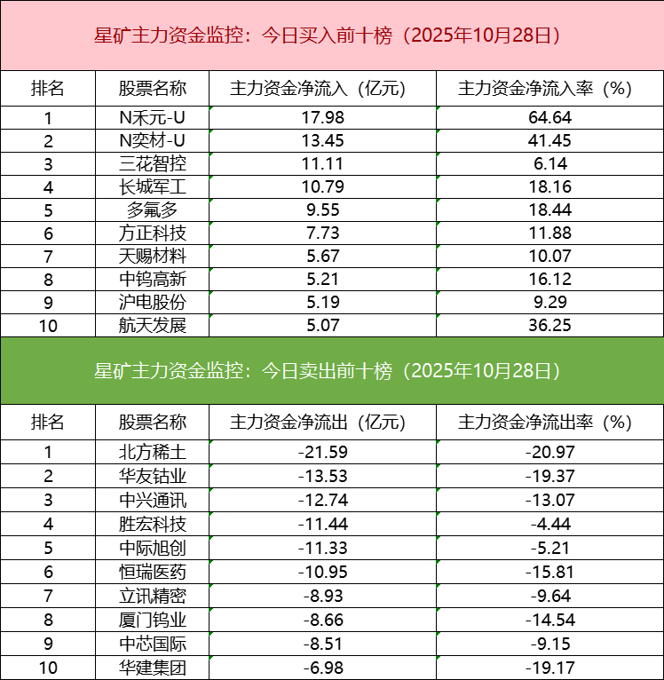 从个股主力资金监控数据来看,主力资金净流入前十的个股所属板块较为分散,N禾元净流入居首。