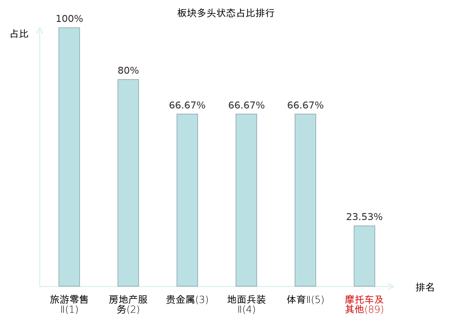 从主力宝信号数据分析,信隆健康所属的摩托车及其他板块中共有4只股票处于主力多头状态,主力多头状态占比在全行业中排名第89位,较昨日上升6位。较高的排名反映了主力对该板块的整体看多意愿较强,排名上升表明主力态度有所增强,对投资者而言,这可能是关注该板块的一个参考点。全市场所有行业板块中主力多头状态占比排名中,旅游零售Ⅱ板块位居第一;个护用品板块名次提升最快,较昨日上升70位。这些变动揭示了不同行业间主力资金偏好的变化,为投资者提供了关于市场趋势的重要线索。