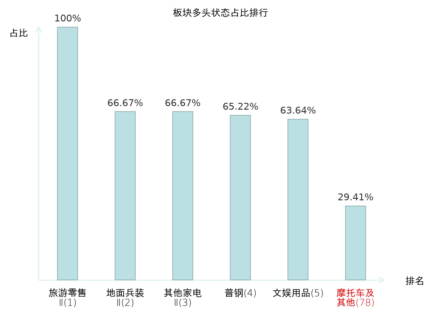 从主力宝信号数据分析,信隆健康所属的摩托车及其他板块中共有5只股票处于主力多头状态,主力多头状态占比在全行业中排名第78位,较昨日下降7位。较高的排名表明主力对于该板块整体看多意愿较强,此次排名下降可能反映了主力对板块态度的微调。全市场所有行业板块中,旅游零售Ⅱ板块的主力多头状态占比最高,位居第一;农商行Ⅱ板块名次提升最快,较昨日上升95位。这些变动为投资者提供了关于市场情绪和主力资金动向的参考,有助于理解当前市场的动态。