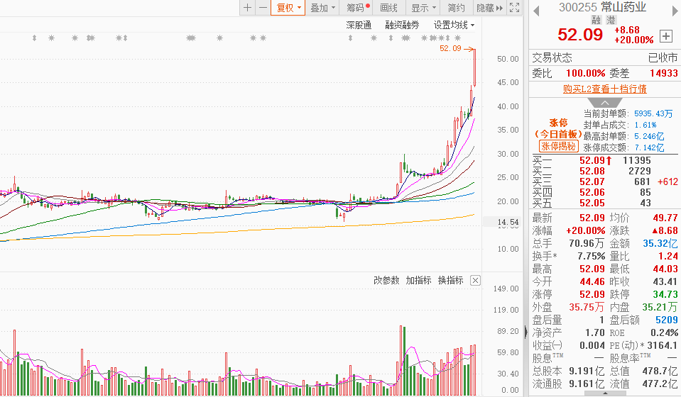 市场全天震荡走高,创业板指领涨。沪深两市全天成交额1.29万亿,较上个交易日放量1344亿。盘面上,创新药概念股再度大涨,常山药业等10余股涨停;足球概念股反复活跃,共创草坪6连板;核电股展开反弹,合锻智能涨停。截至收盘,沪指涨0.43%,深成指涨0.65%,创业板指涨1.07%。涨跌幅方面,创新药、足球概念、稀土永磁、可控核聚变等板块涨幅居前,贵金属等少数板块下跌。