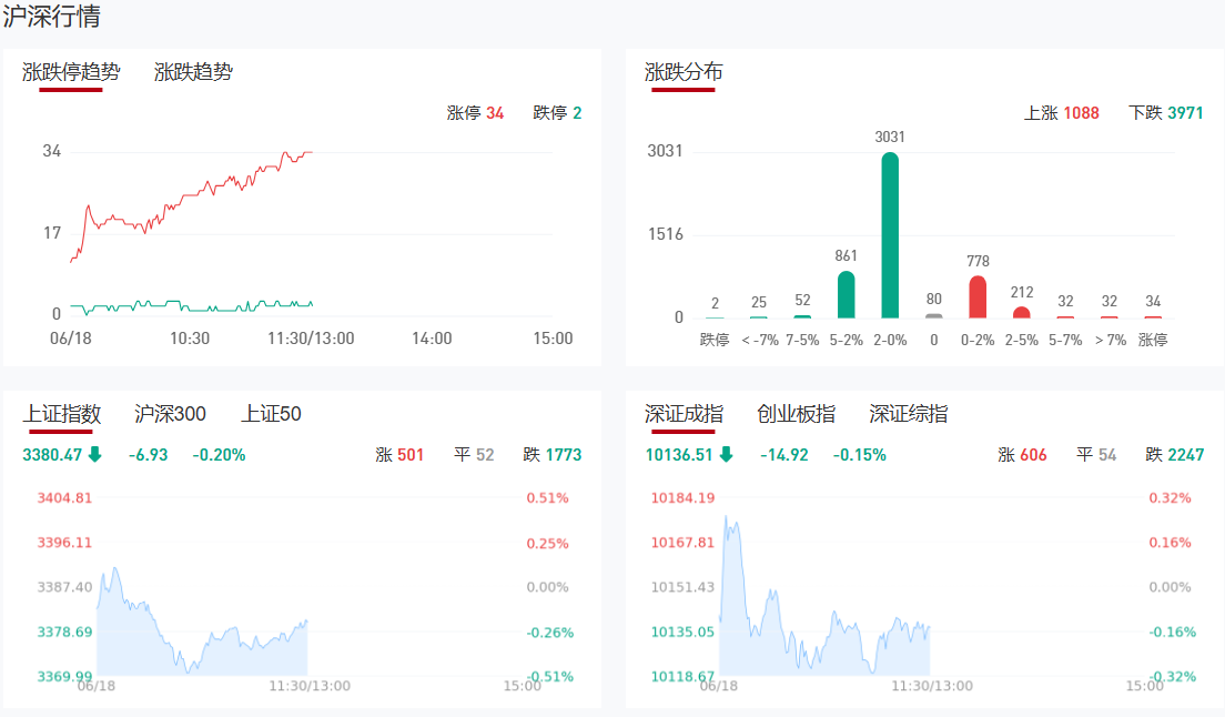 市场早盘震荡调整,三大指数小幅下跌。沪深两市半日成交额7430亿,较上个交易日缩量285亿。盘面上热点较为杂乱,个股跌多涨少,全市场超4100只个股下跌。从板块来看,军工股集体走强,北方长龙20CM涨停。算力硬件股展开反弹,中京电子涨停。银行股逆势活跃,农业银行等多股再创历史新高。下跌方面,稀土永磁概念股震荡走低,中科磁业跌超10%。