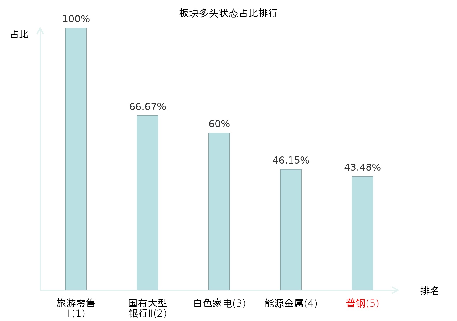 全市场所有行业板块中主力多头状态占比排名中,旅游零售Ⅱ板块位居第一。光学光电子板块名次提升最快,较昨日上升59位。