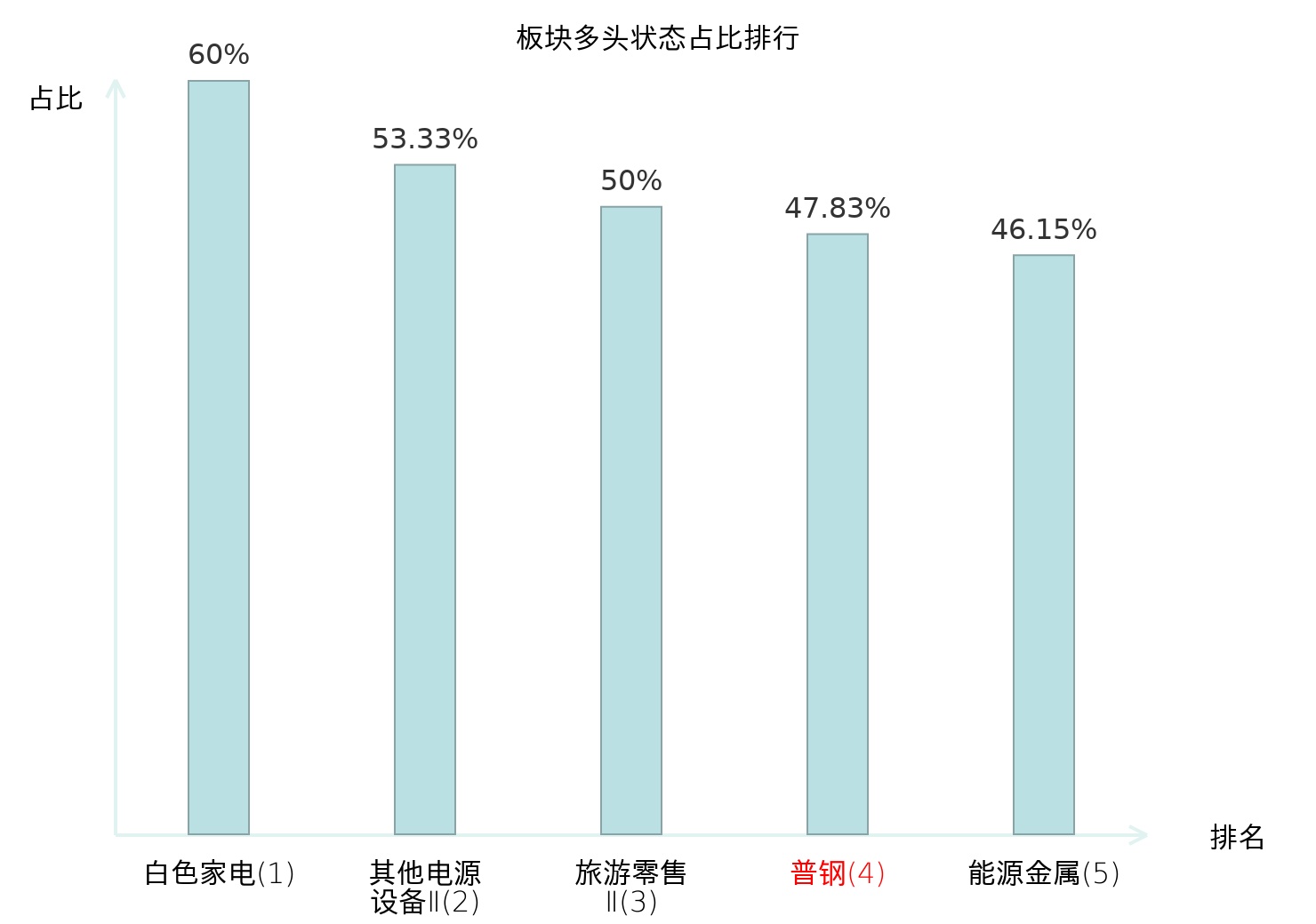 全市场所有行业板块中主力多头状态占比排名中,白色家电板块位居第一。照明设备Ⅱ板块名次提升最快,较昨日上升55位。