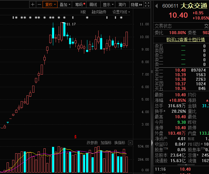 受大众交通再次涨停影响,公共交通板块今天早盘也跟随反弹。锦江在线早盘涨停,江西长运、富临运业、申通地铁、海汽集团、永安行等跟随上涨。