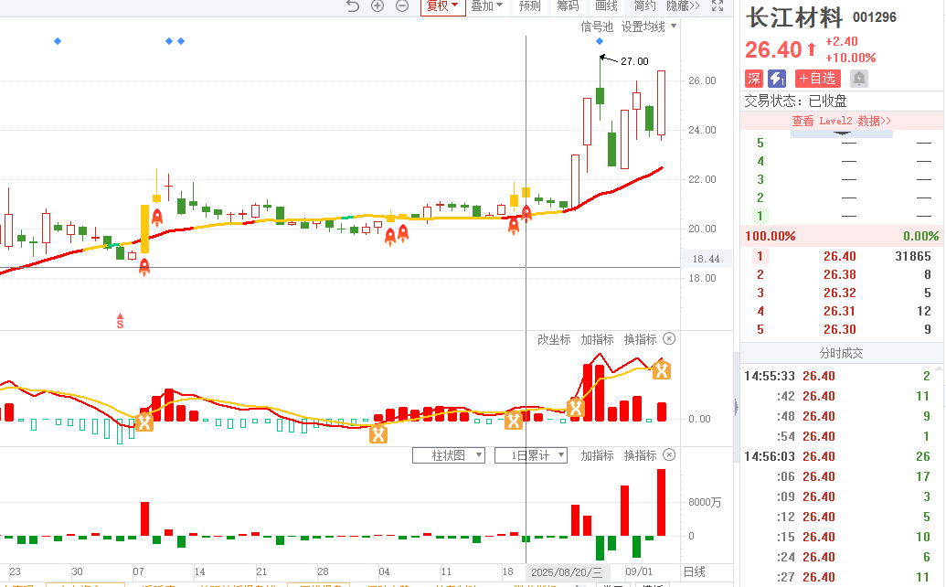 1)20250820-长江材料-四维操盘-近期出现火箭信号且底部量柱由绿转红