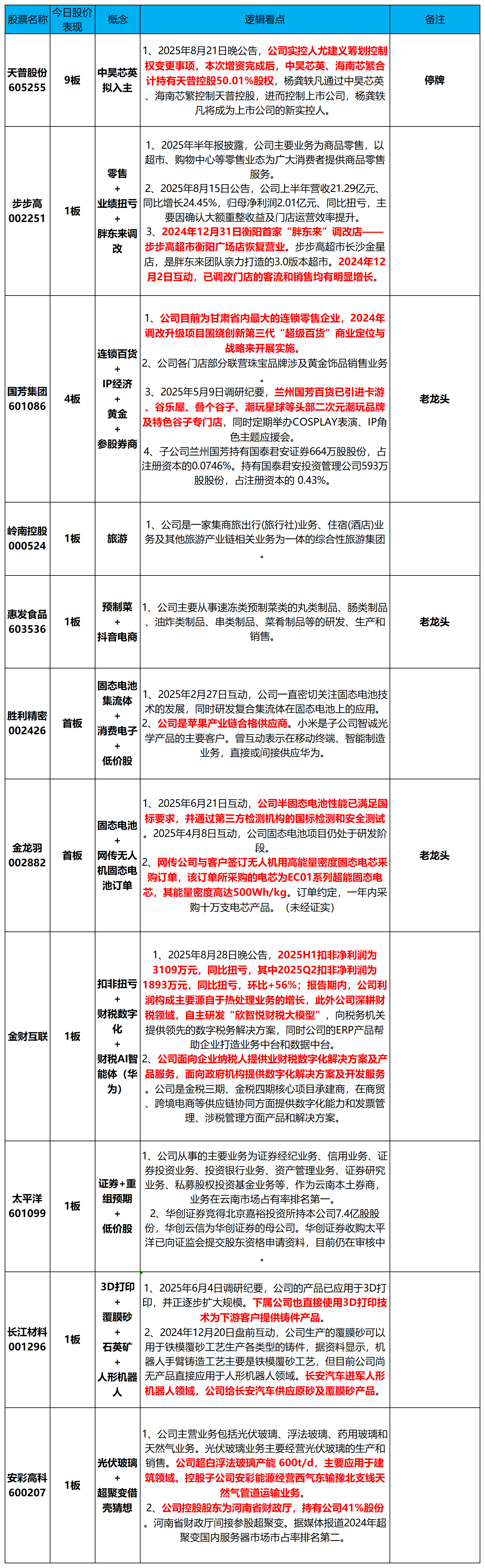 步步高002251、国芳集团601086、岭南控股000524、惠发食品603536、胜利精密002426、金龙羽002882、金财互联002530、太平洋601099