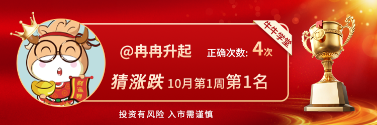 2、大家期待的【猜涨跌】活动已上线,在圈子内点击对话框上方【猜涨跌】了解详情!本周冠军:知足常乐和冉冉升起并列第一;