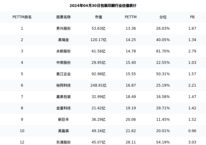 从估值角度看:东港股份最新市盈率PETTM为28.11,在行业内排名12/42,处于54.19分位。