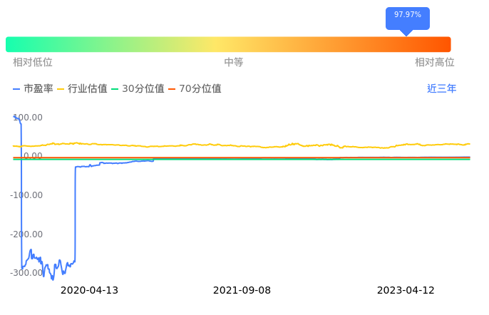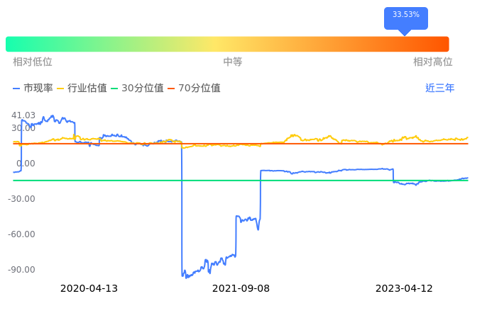 紫鑫药业当前市盈率PETTM为-2.02,在所属的中药中,市盈率PETTM排62名。前5名分别为ST康美PETTM3.70、康恩贝PETTM8.12、济川药业PETTM12.89、白云山PETTM13.96、仁和药业PETTM15.13。从PETTM估值走势数据来看,紫鑫药业当前市盈率PETTM为-2.02,超过近3年97.97%的历史数据。