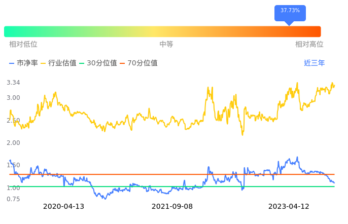 2023年04月12日,紫鑫药业上涨0.52%收于1.92,今日成交金额2616.17万元。下文将从市盈率PETTM、市净率PB、市现率3个角度去分析公司估值情况。