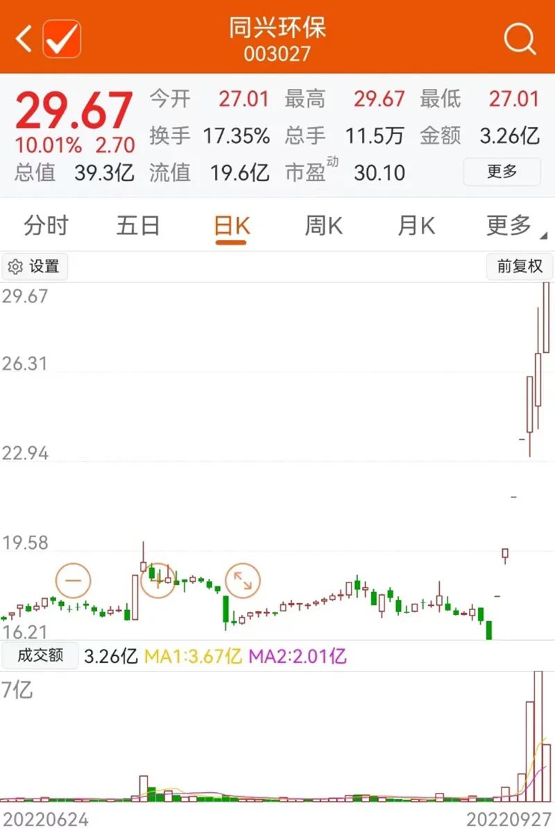 9月19日,即上述公告披露后首个交易日,同兴环保股价“一字涨停”,并就此开启连板征程。