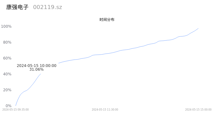 002119康强电子2024年05月15日成交9.32万手,成交金额9724.94万元,相较昨日缩量6468手,换手率2.48%,成交清淡。