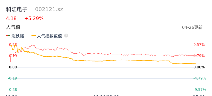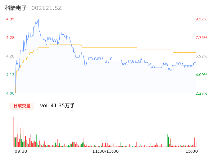 04月26日,科陆电子收报4.18,股价涨幅5.29%,成交金额1.75亿元,换手率2.95%。