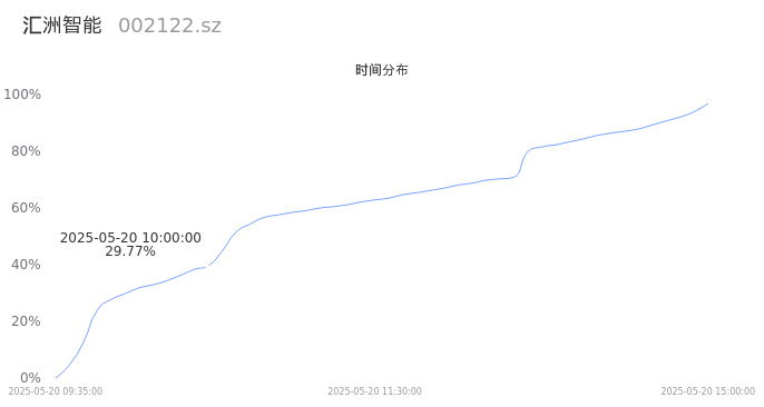 002122汇洲智能2025年05月20日成交193.92万手,成交金额8.19亿,相较昨日放量84.33万手,换手率9.75%,成交清淡。