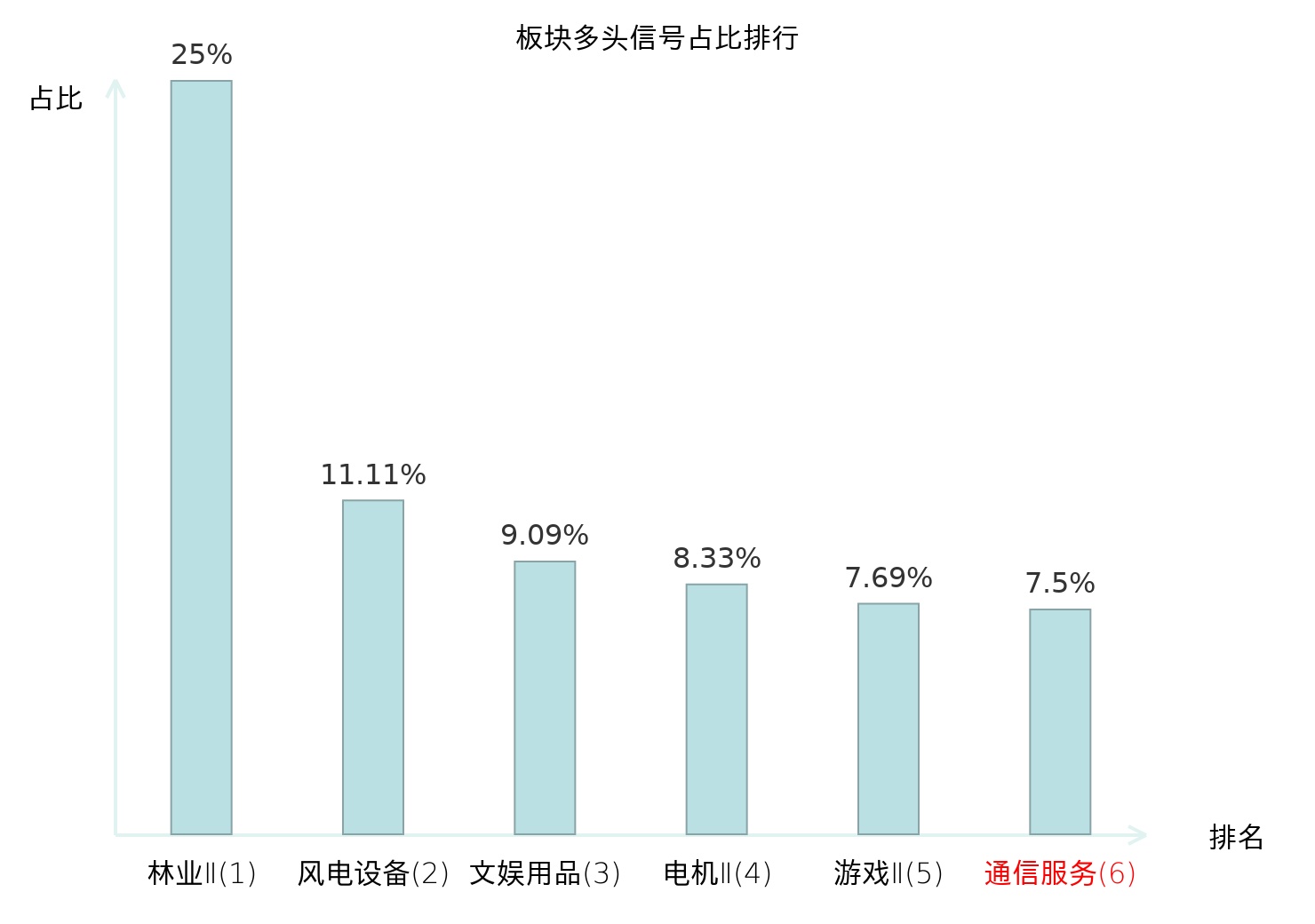 全市场所有行业板块中主力多头信号占比排名中,林业Ⅱ板块位居第一。林业Ⅱ板块名次提升最快,较昨日上升124位。