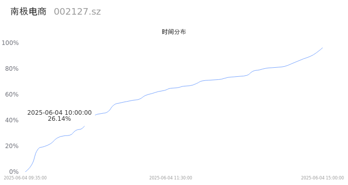 002127南极电商2025年06月04日成交37.91万手,成交金额1.60亿,相较昨日缩量11.32万手,换手率1.91%,成交清淡。