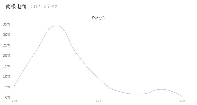 然后我们来看下当日成交的价格分布。经过分析发现,该股票当日成交价格波动低于10个最小波动价位,由于可以参考的样本量非常少,价格分布分析的结果不具有指导意义,下图仅供参考。