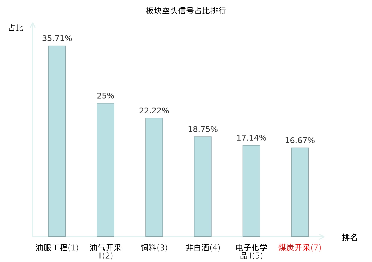 全市场所有行业板块中主力空头信号占比排名中,油服工程板块位居第一。电池板块名次提升最快,较昨日上升104位。