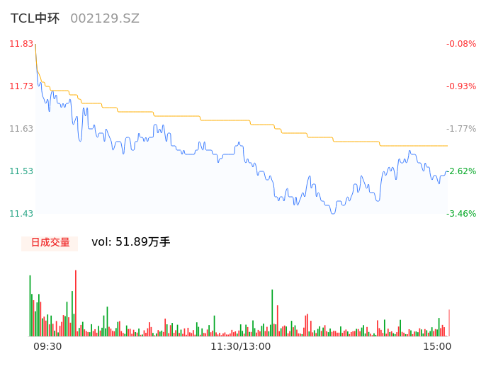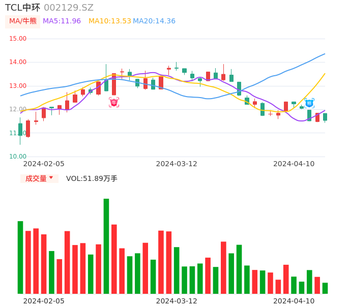 04月10日,TCL中环收报11.53,股价涨幅-2.62%,成交金额6.01亿元,换手率1.28%。