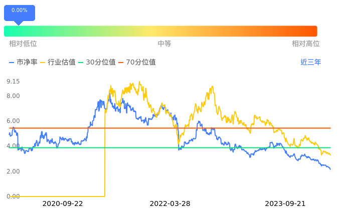 TCL中环当前市净率PB为2.15,在所属的光伏设备中,市净率PB排11,前五名分别为明冠新材市净率1.30、拓日新能市净率1.41、东方日升市净率1.45、亚玛顿市净率1.52、安彩高科市净率1.63。TCL中环当前市净率PB为2.15,超过近3年0.00%的历史数据。