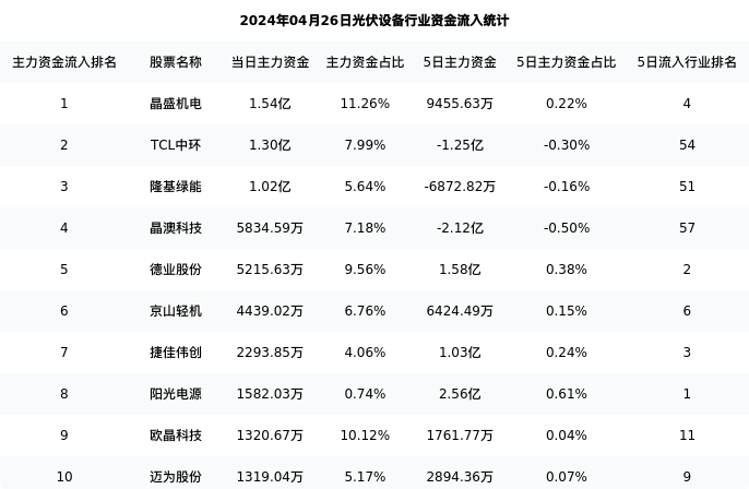 从主力资金流向来看,光伏设备行业今日主力资金流入63.59亿元,在所有申万二级行业中排名:3/131。