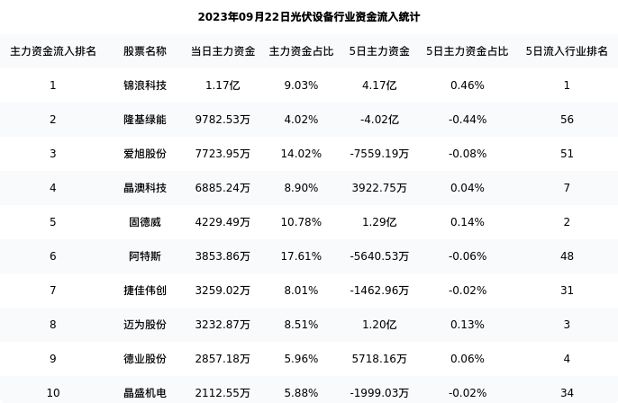 从主力资金流向来看,光伏设备行业今日主力资金流入60.37亿元,在所有申万二级行业中排名:60/131。