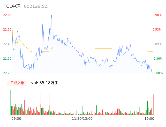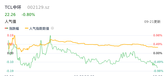 09月21日,TCL中环收报22.26,股价涨幅-0.80%,成交金额7.88亿元,换手率0.87%。