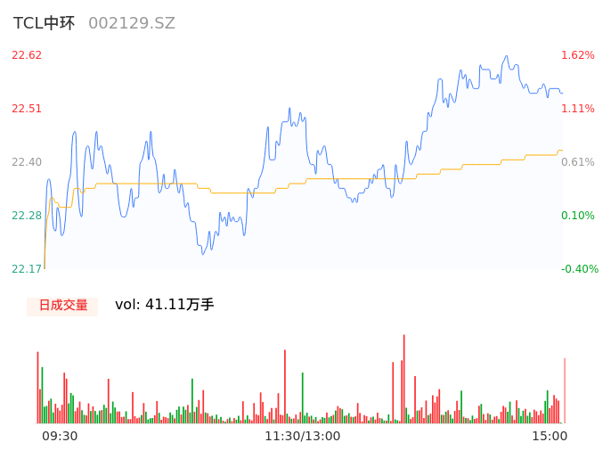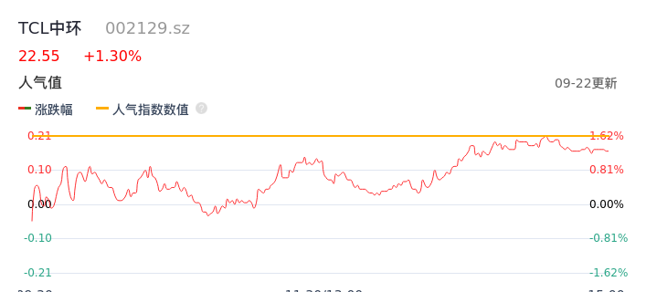 09月22日,TCL中环收报22.55,股价涨幅1.30%,成交金额9.22亿元,换手率1.02%。
