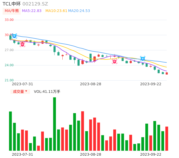 TCL中环在9月14日出现日线级别熊点,股价已经进入下降通道,且60分钟级别也处于熊点信号,短中期持续走弱,建议继续谨慎观望。