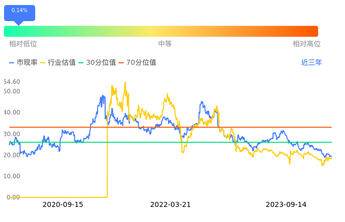2023年09月14日,TCL中环下跌1.19%收于24.16,今日成交金额6.63亿元。下文将从市盈率PETTM、市净率PB、市现率3个角度去分析公司估值情况。