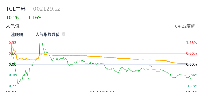 04月22日,TCL中环收报10.26,股价涨幅-1.16%,成交金额6.94亿元,换手率1.65%。