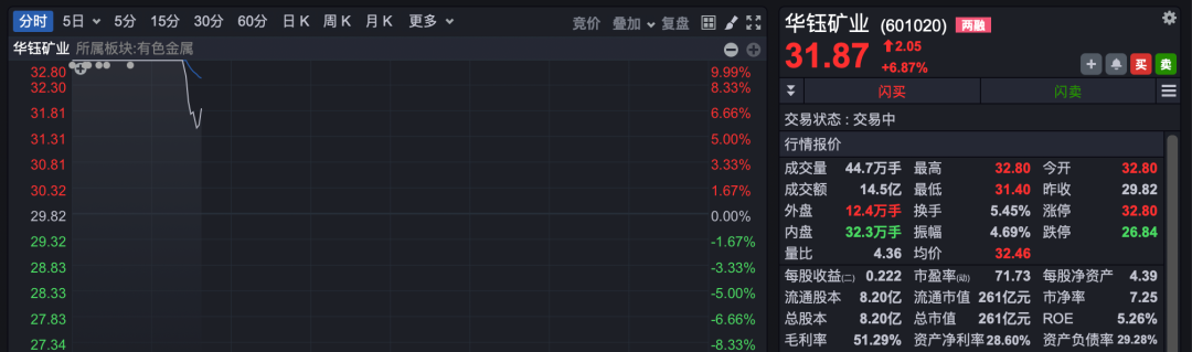 盘初,黄金概念股持续活跃。华钰矿业竞价涨停,截至发稿涨幅为6.87%。西部黄金、湖南黄金、中金黄金、豫光金铅等跟涨。