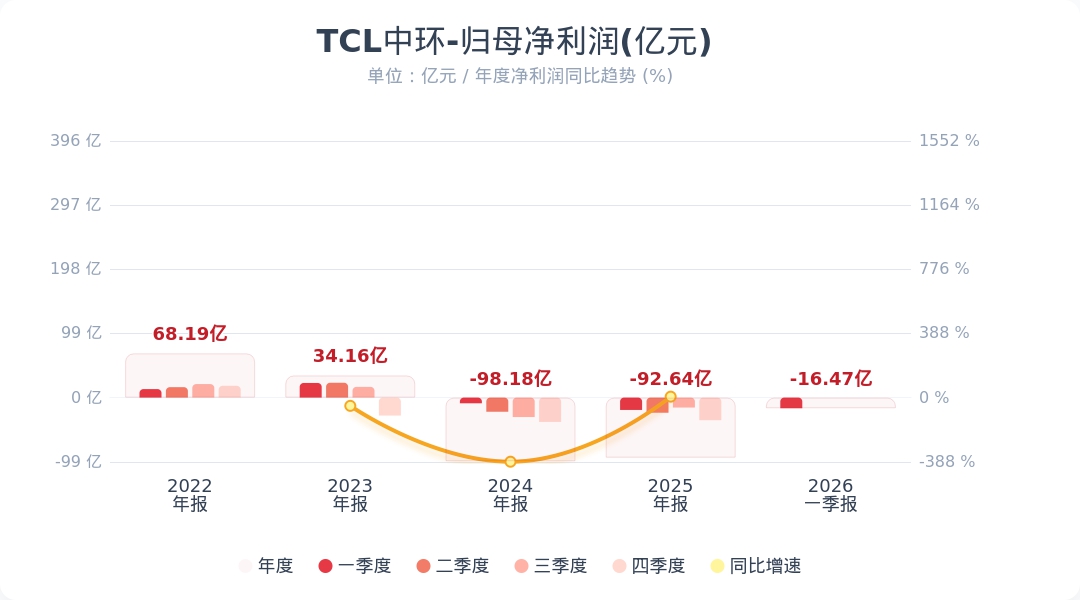 TCL中环:第一季度净亏损16.47亿元