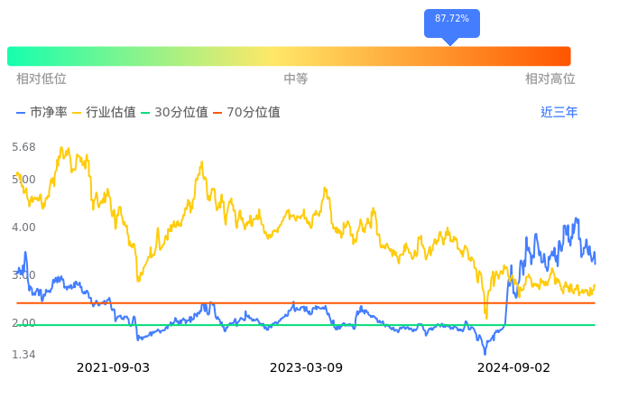 2024年09月02日,沃尔核材下跌7.94%收于12.99,今日成交金额16.87亿。下文将从市盈率PETTM、市净率PB、市现率3个角度去分析公司估值情况。