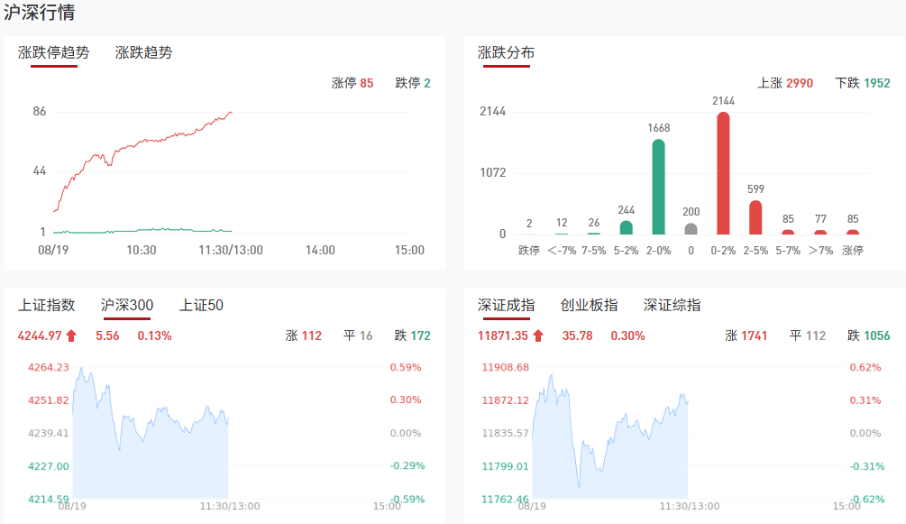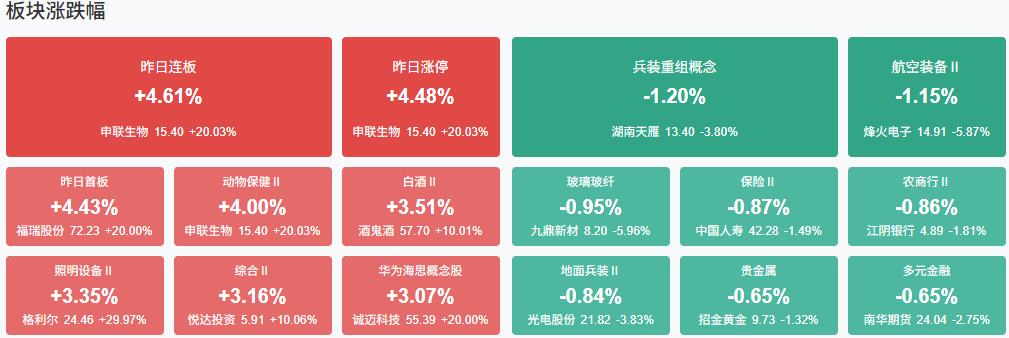 市场早盘冲高回落,三大指数小幅上涨。沪深两市半日成交额1.64万亿,较上个交易日缩量787亿。盘面上热点较为杂乱,个股涨多跌少,全市场超3200只个股上涨。从板块来看,华为概念股震荡走强,诚迈科技20CM涨停。CPO等算力硬件股维持强势,新易盛等多股续创历史新高。白酒等消费股展开反弹,酒鬼酒涨停。下跌方面,军工股展开调整,烽火电子跌超5%。