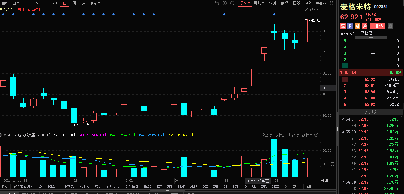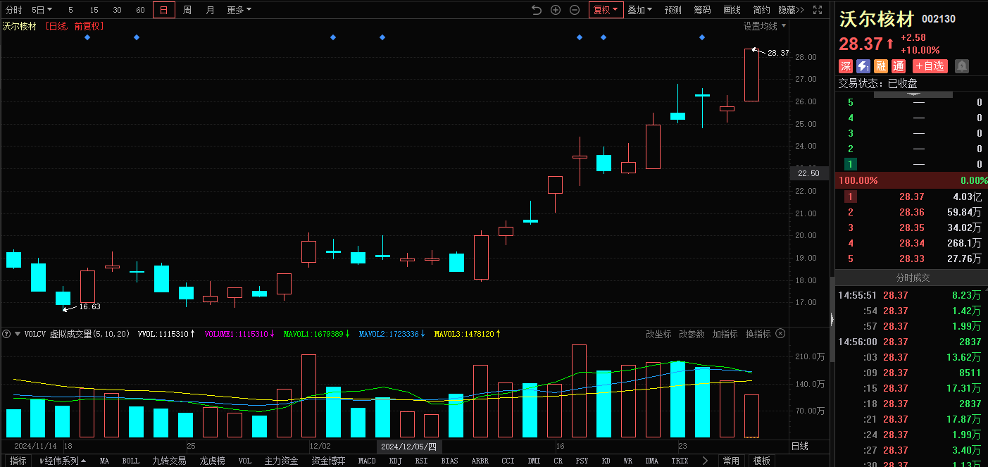 这里高位的几个产业趋势大票全部加速,比如沃尔核材,麦格米特等个股全部出现涨停回调趋势加速的行情,代表这里市场情绪的延续,不少个股出现的加速主升浪,是量化与游资合力的结果