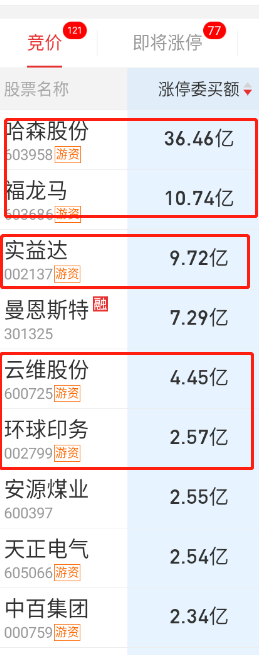 从竞价来看,最强的是重组成功的哈森股份,同时还有福龙马、实益达的超预期一字板,同时看到被核按钮的票比如电光科技这种,从跌停3-5分钟之内直接被拉到涨停,说明情绪出现极致的反转,市场的亏钱效应一瞬间逆转,这就是竞价开始逼空走强的表现