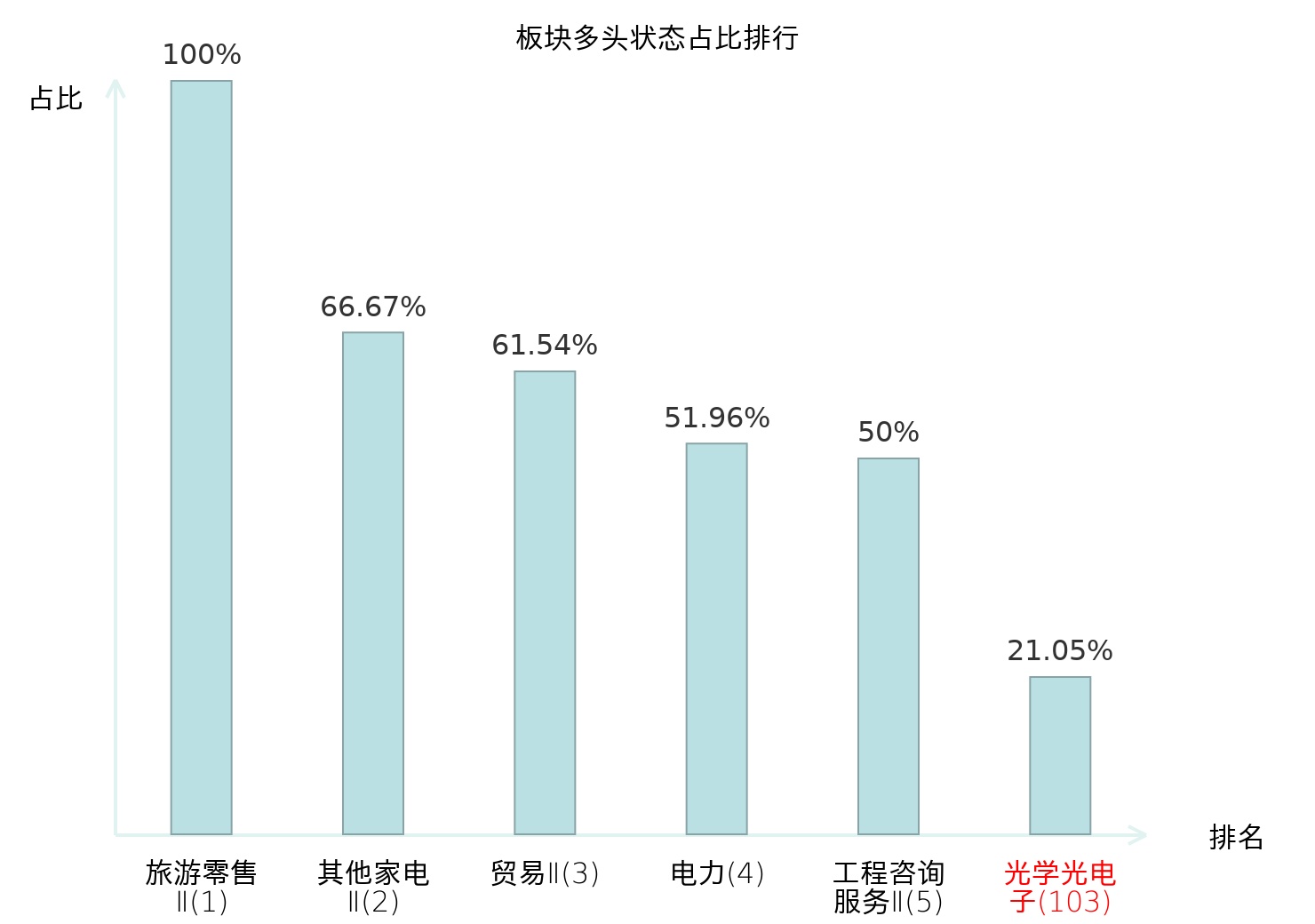 从主力宝信号数据分析,实益达所属的光学光电子板块中共有20只股票处于主力多头状态,主力多头状态占比在全行业中排名第103位,较昨日下降4位。排名越高表明主力对板块整体的看多意愿越强,此次排名下降可能反映了主力对光学光电子行业的态度有所调整。全市场所有行业板块中主力多头状态占比排名中,旅游零售Ⅱ板块位居第一;文娱用品板块名次提升最快,较昨日上升84位。这些变动揭示了不同行业间主力资金偏好变化的趋势,为投资者提供了关于市场动态的重要参考。
