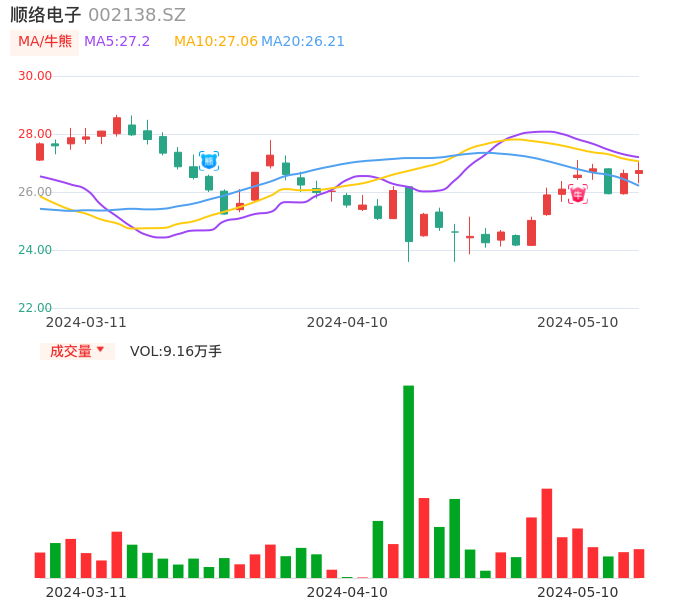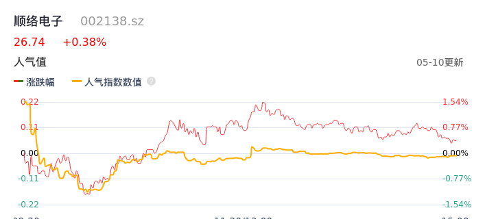 05月10日,顺络电子收报26.74,股价涨幅0.38%,成交金额2.45亿元,换手率1.21%。