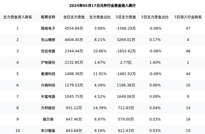 从主力资金流向来看,元件行业今日主力资金流入29.12亿元,在所有申万二级行业中排名:127/131。
