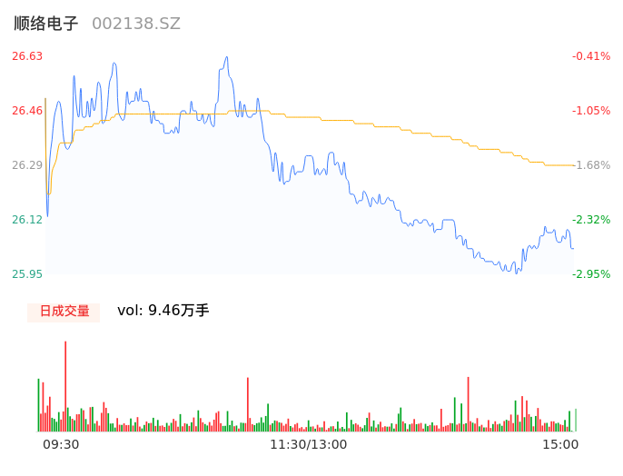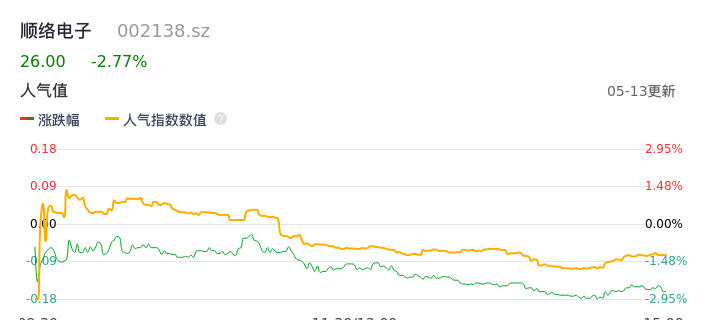 05月13日,顺络电子收报26.00,股价涨幅-2.77%,成交金额2.49亿元,换手率1.25%。