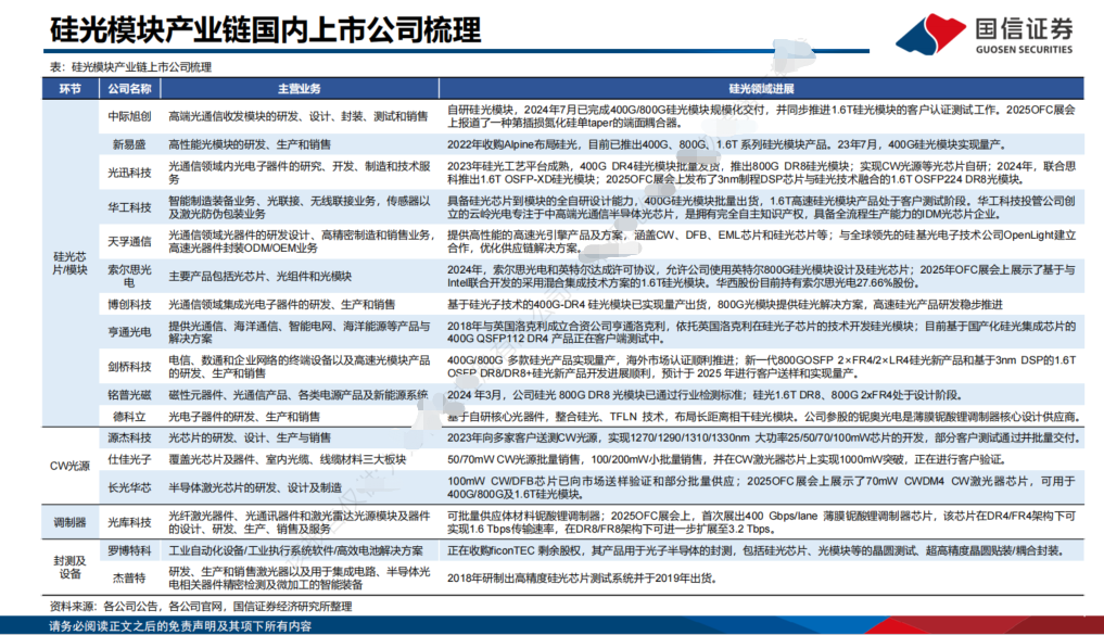 ④源杰科技:国内光芯片龙一,旭创参股,CPO增加CW光源,公司有100G、200GW光源产品。