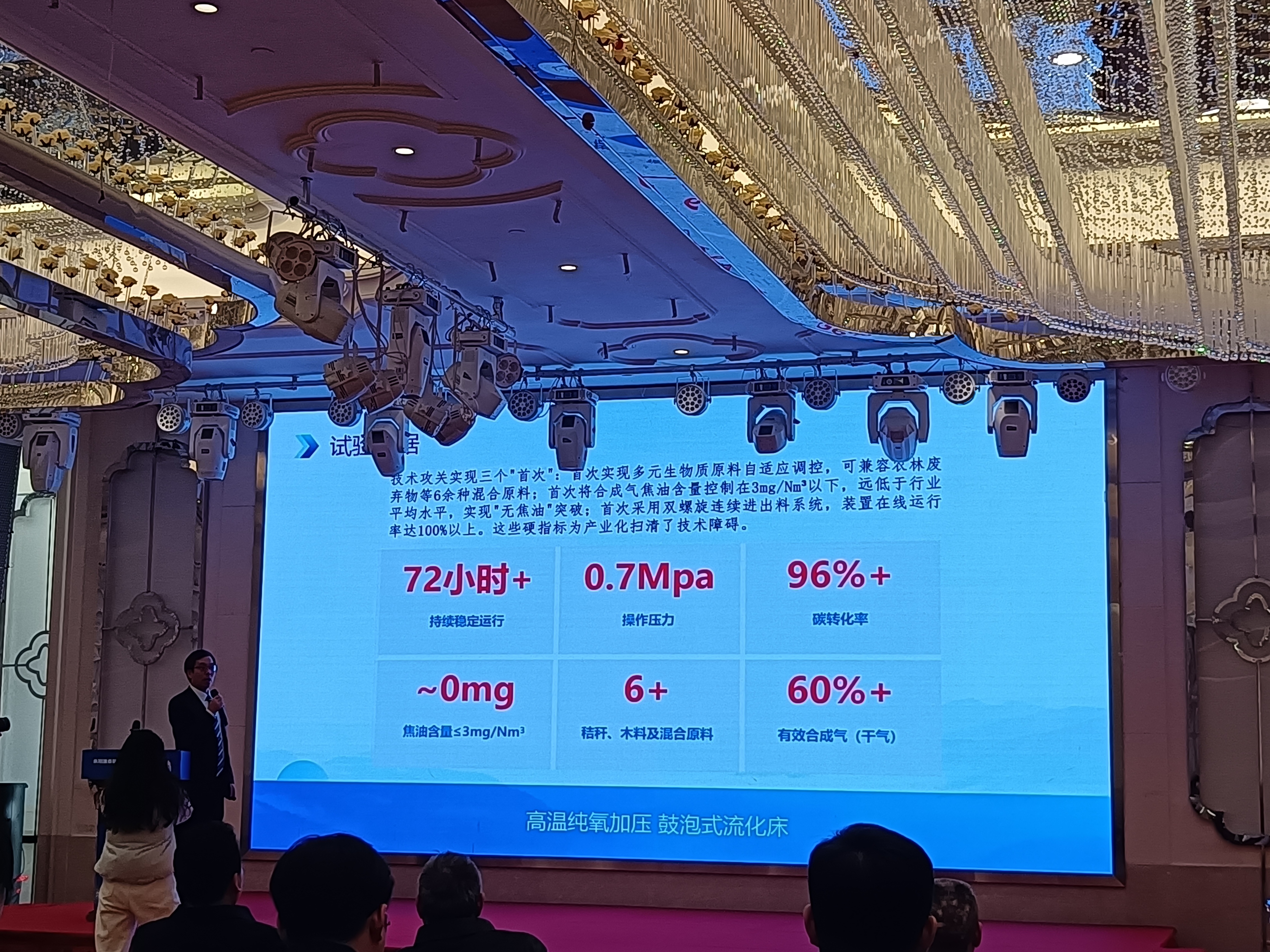 “本次成功运行的中试装置,操作压力达0.7Mpa,碳转化率超过96%,且焦油等污染物生成量极低。”阜阳康泰斯生物工程技术有限公司总经理陈维武介绍,技术攻关实现三个“首次”:首次实现多元生物质原料自适应调控,可兼容农林废弃物等6余种混合原料;首次将合成气焦油含量控制在3mg/Nm以下,远低于行业平均水平,实现“无焦油”突破;首次采用双螺旋连续进出料系统,装置在线运行率达100%以上。这些硬指标为产业化扫清了技术障碍。
