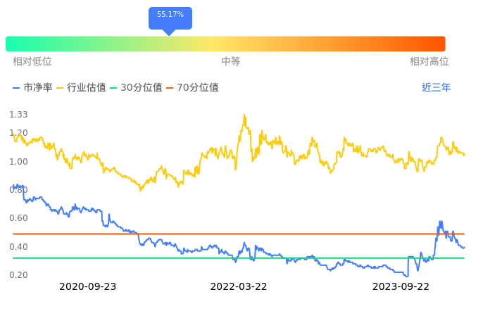 荣盛发展当前市净率PB为0.40,在所属的房地产开发中,市净率PB排4,前五名分别为ST世茂市净率0.30、金融街市净率0.36、福星股份市净率0.39、荣盛发展市净率0.40、绿地控股市净率0.42。荣盛发展当前市净率PB为0.40,超过近3年55.17%的历史数据。