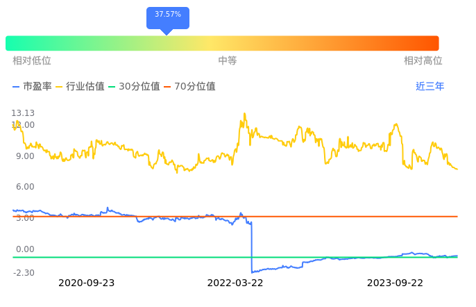 2023年09月22日,荣盛发展上涨2.40%收于2.13,今日成交金额2.58亿元。下文将从市盈率PETTM、市净率PB、市现率3个角度去分析公司估值情况。