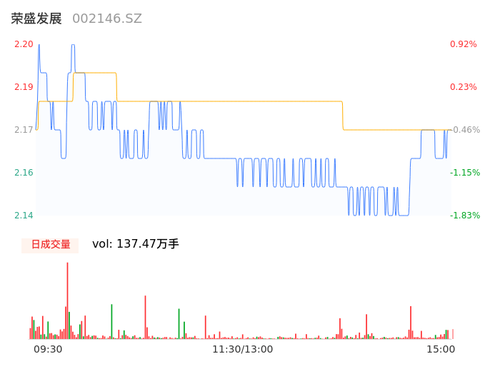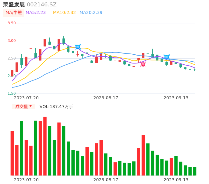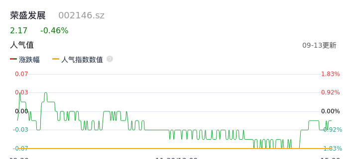 09月13日,荣盛发展收报2.17,股价涨幅-0.46%,成交金额2.98亿元,换手率3.52%。