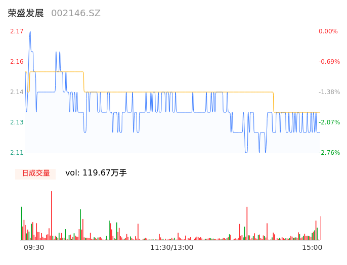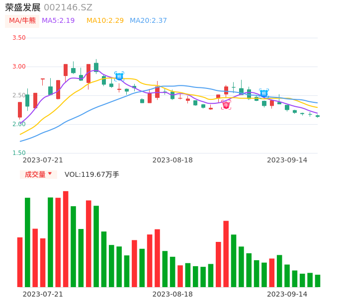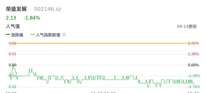 09月14日,荣盛发展收报2.13,股价涨幅-1.84%,成交金额2.55亿元,换手率3.07%。